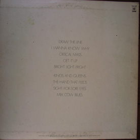 A面:DRAW THE LINE/I WANNA KNOW WHY/CRITICAL MASS/GET IT UP/BRIGHT LIGHT FRIGHT/